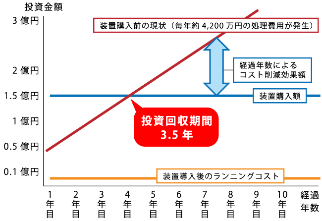 3〜5年でイニシャルコストの回収が可能です。その後は、ゴミ処理代は実質0円となります。
